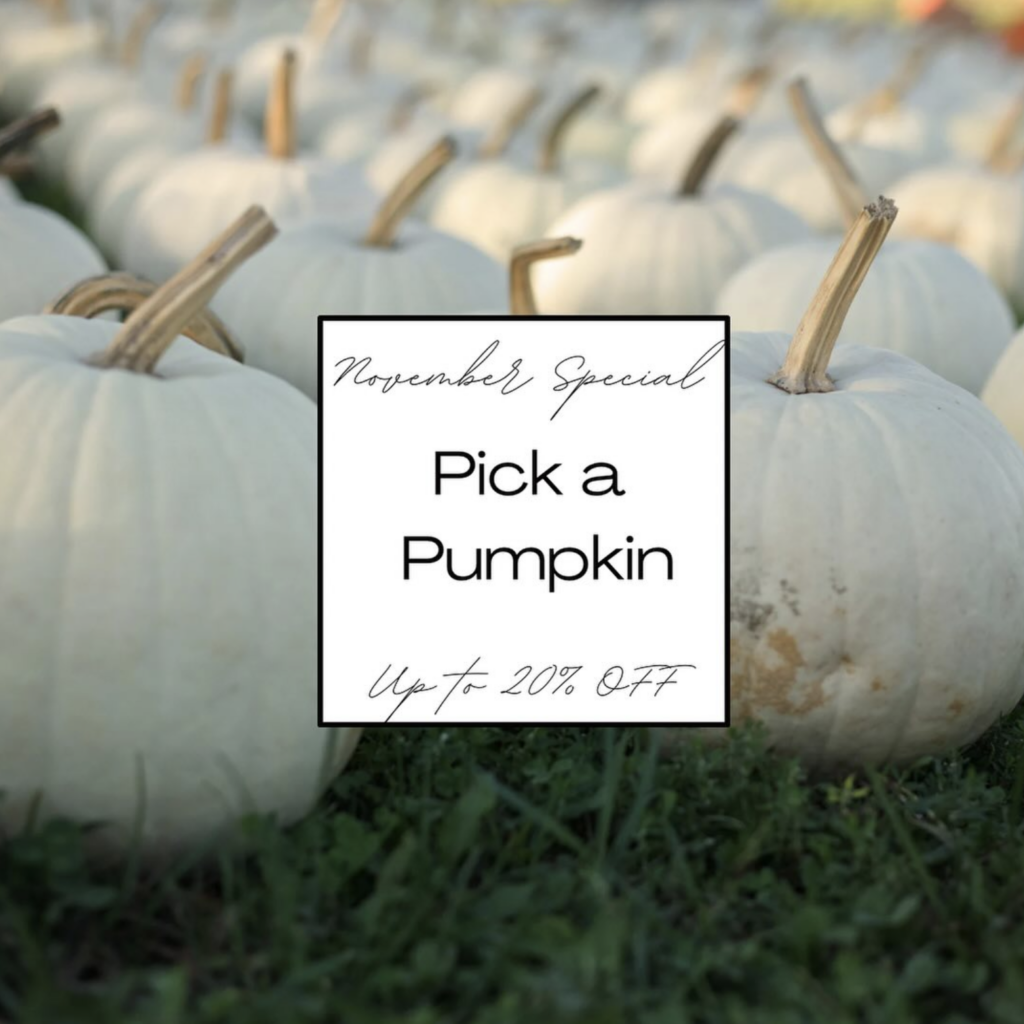 Pick a Pumpkin Receive the discount on that pumpkin. Up to 20% off any one product to take home.